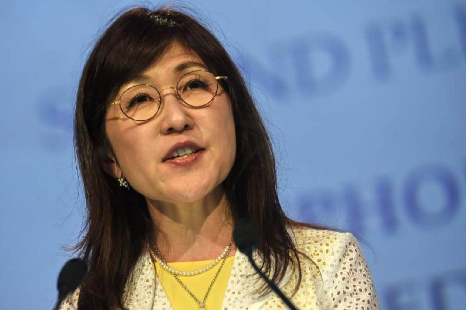 Japanese Defense Minister Tomomi Inada delivers her speech during the second plenary session at the 16th Institute for Strategic Studies (IISS), Shangri-La Dialogue Summit in Singapore on June 3, 2017.