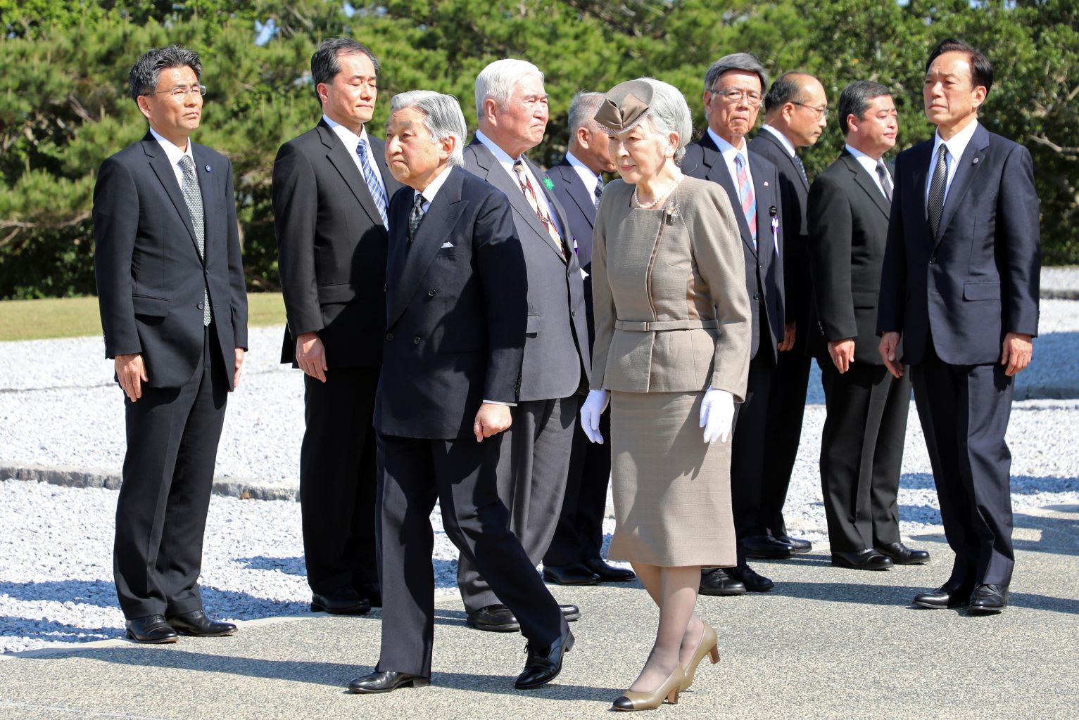 Japan's Emperor Akihito and Empress Michiko visit the National War Dead Peace Mausoleum in Itoman, Okinawa prefecture, on March 27, 2018.