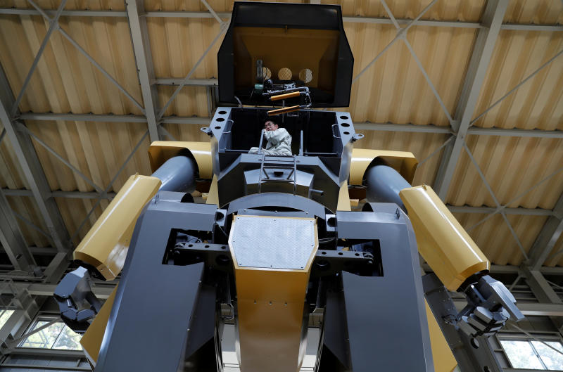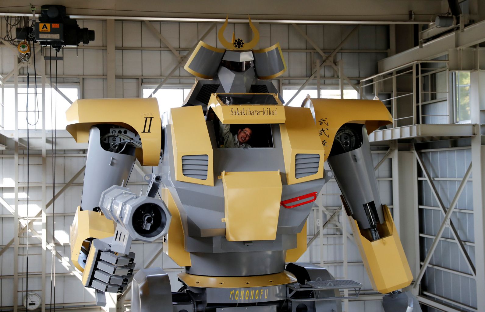 Developed at Sakakibara Kikai, a maker of farming machinery, LW-Mononofu is an 8.5-metre-tall, two-legged robot weighing more than 7 tonnes. It contains a cockpit with monitors and levers for the pilot to control the robot's arms and legs.