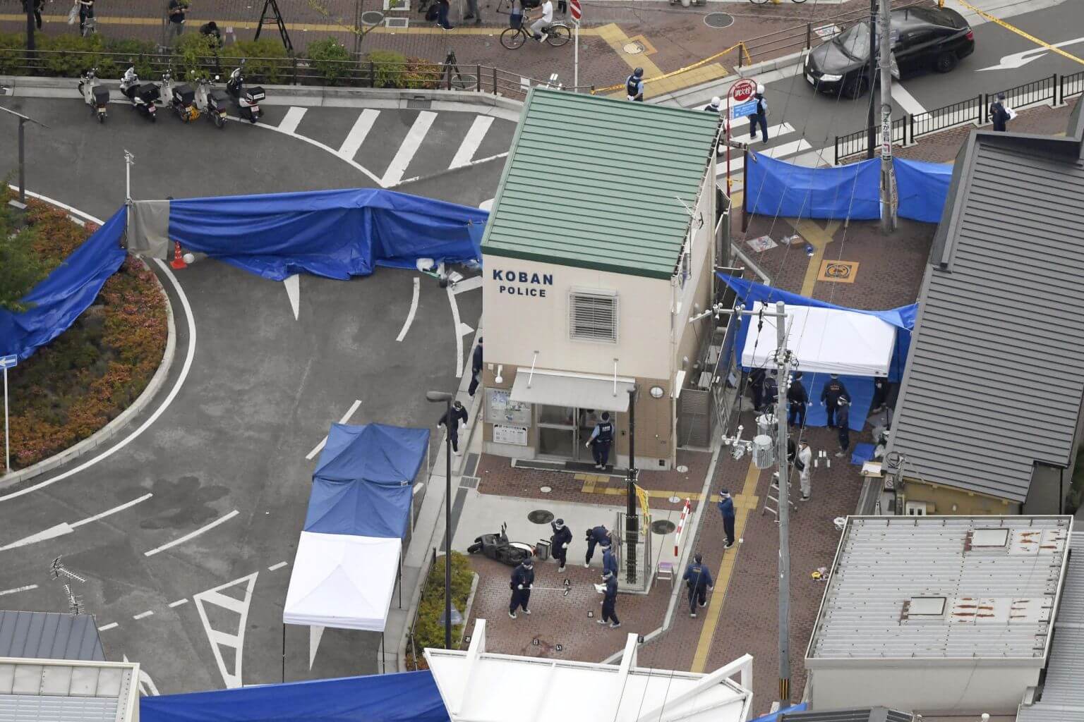 Police suspect the attack may have been premeditated, as nothing else was stolen and a security camera showed a man, who appeared in his 30s, hanging around the police box about an hour before the stabbing, said NHK.