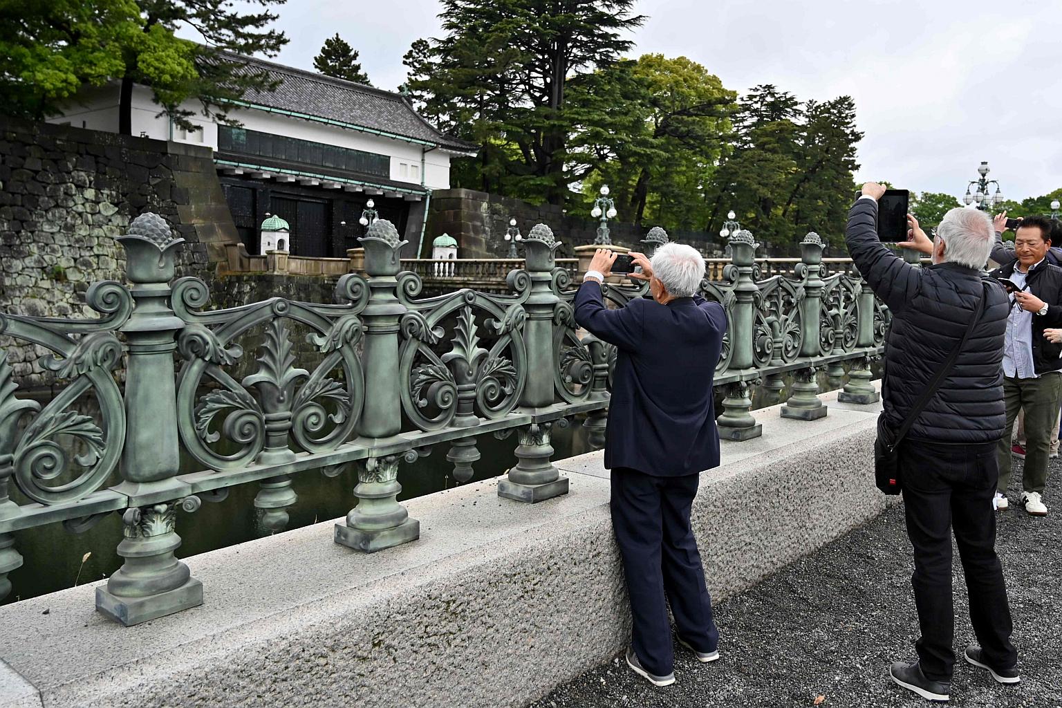 People take photos outside the Imperial Palace, where the abdication ceremony for Japan's Emperor Akihito is taking place, on April 30, 2019.