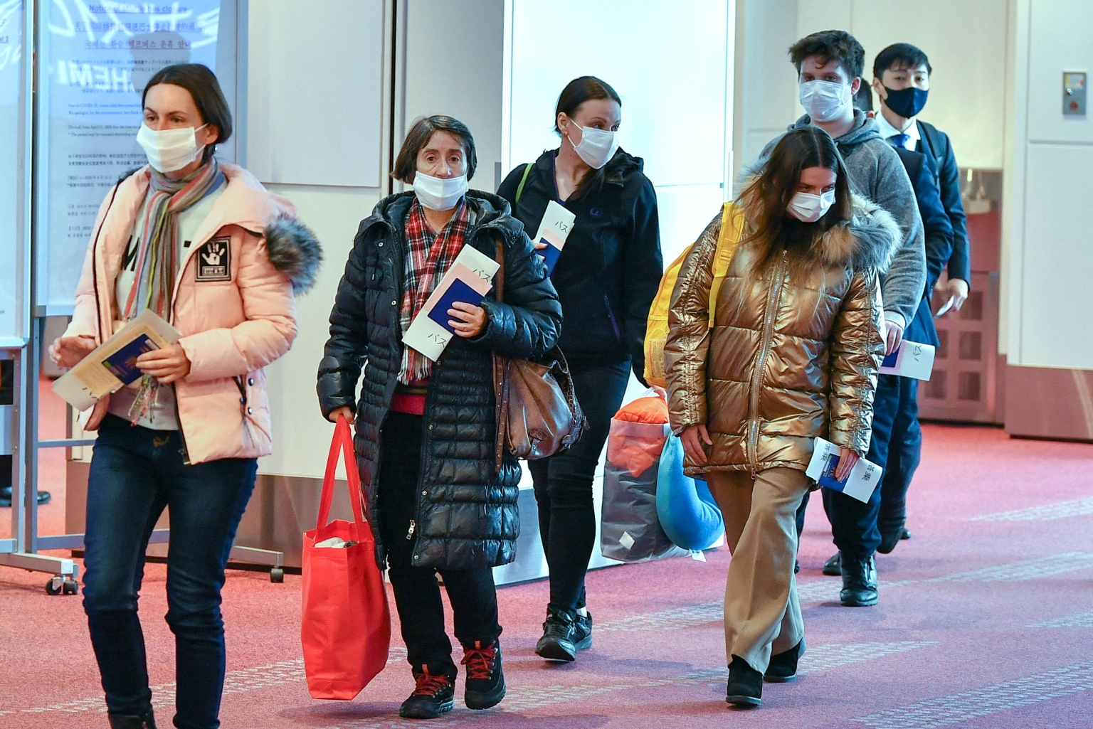 Ukrainians arriving at Tokyo's Haneda Airport on April 5, 2022.