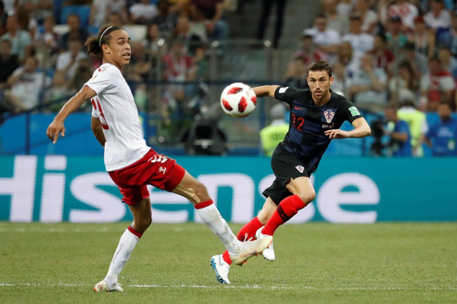 A Hisense advertisement seen during the World Cup match between Croatia and Denmark, on July 1, 2018.