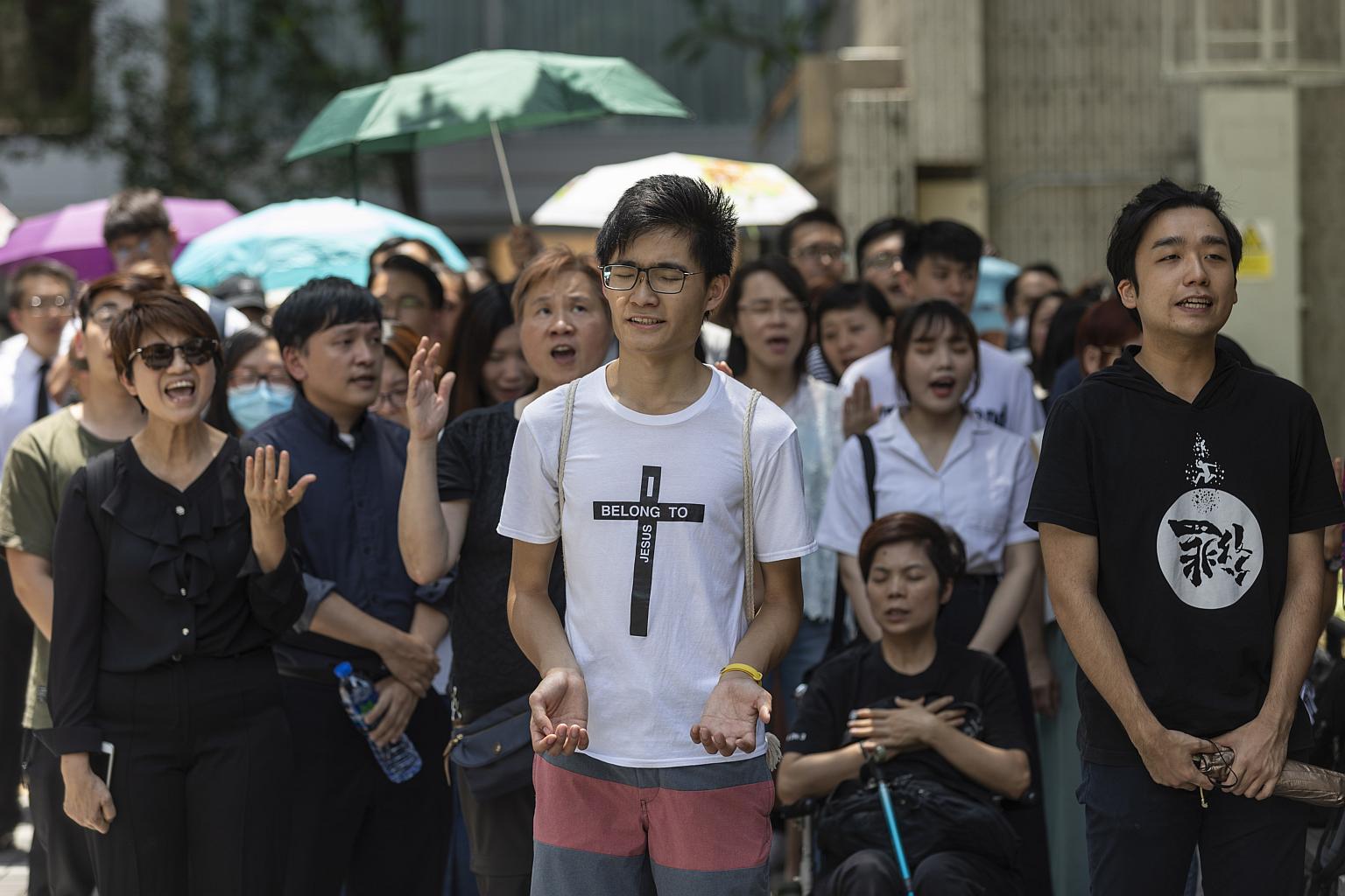Christian worshippers singing hymns to voice their opposition to an extradition law in Hong Kong, on June 14, 2019.