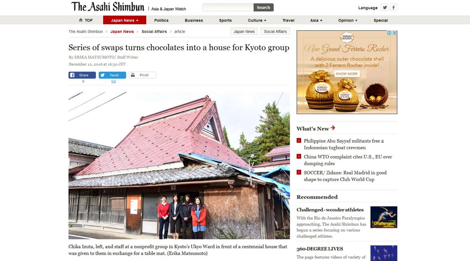 Kyoto non-profit group puts up chocolates for trade and eventually snag a house