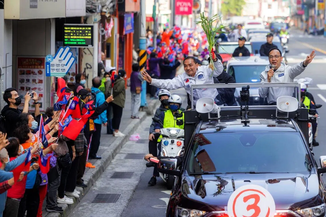 In Taoyuan city, north-western Taiwan, Mr Hou and running mate Jaw Shaw-kong were joined by Taipei Mayor Chiang Wan-an, former Kaohsiung mayor Han Kuo-yu and KMT chairman Eric Chu at a rally attended by some 100,000 people.
