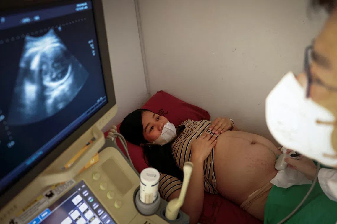 Ms Marian Duhapa undergoing an ultrasound scan during a prenatal check-up at a hospital in New Taipei City, Taiwan, in June 2024. She lost her job due to her pregnancy and had to stay in a shelter in New Taipei.