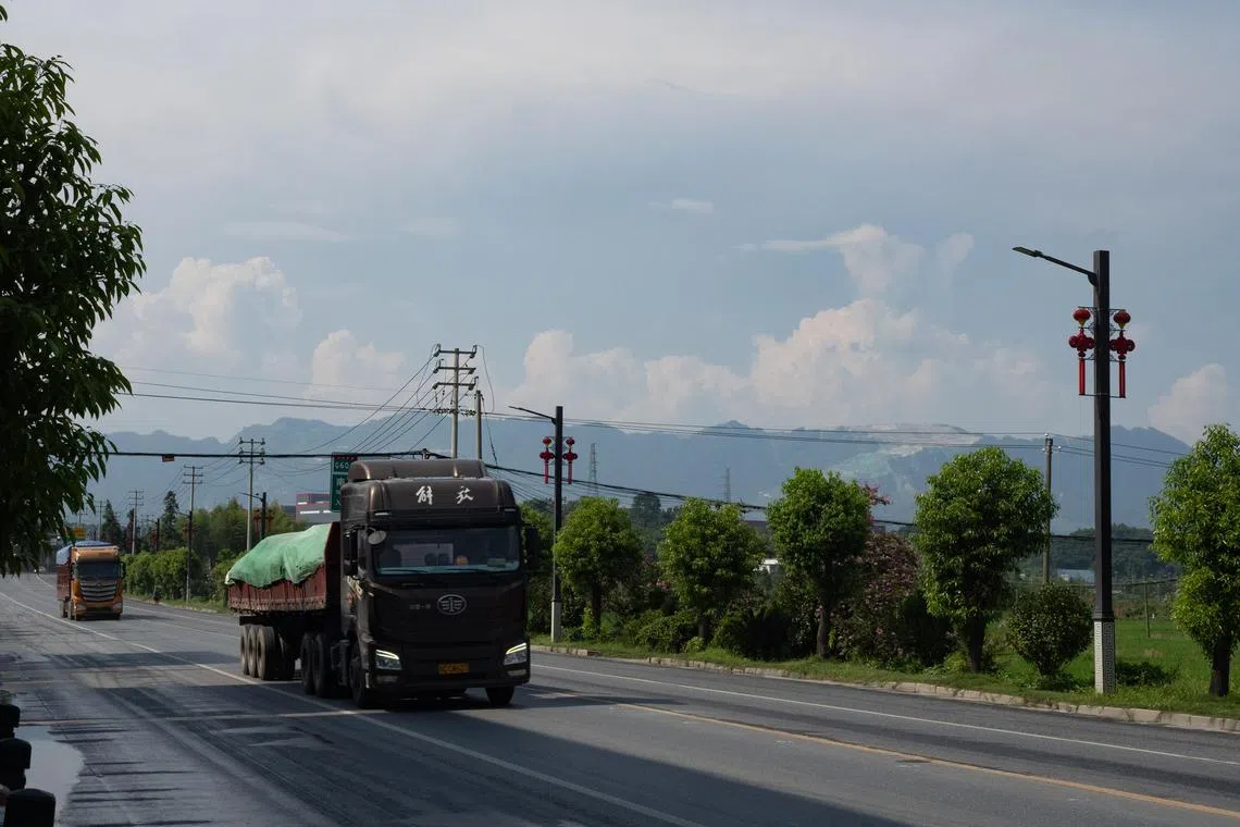 Xinfang Town’s “414” lepidolite mine contains rich deposits of lithium, tantalum, niobium, rubidium and caesium. When ST visited on Aug 12, trucks were moving in and out at a steady pace. Yet, this was a far cry from the boom years, local residents told ST.