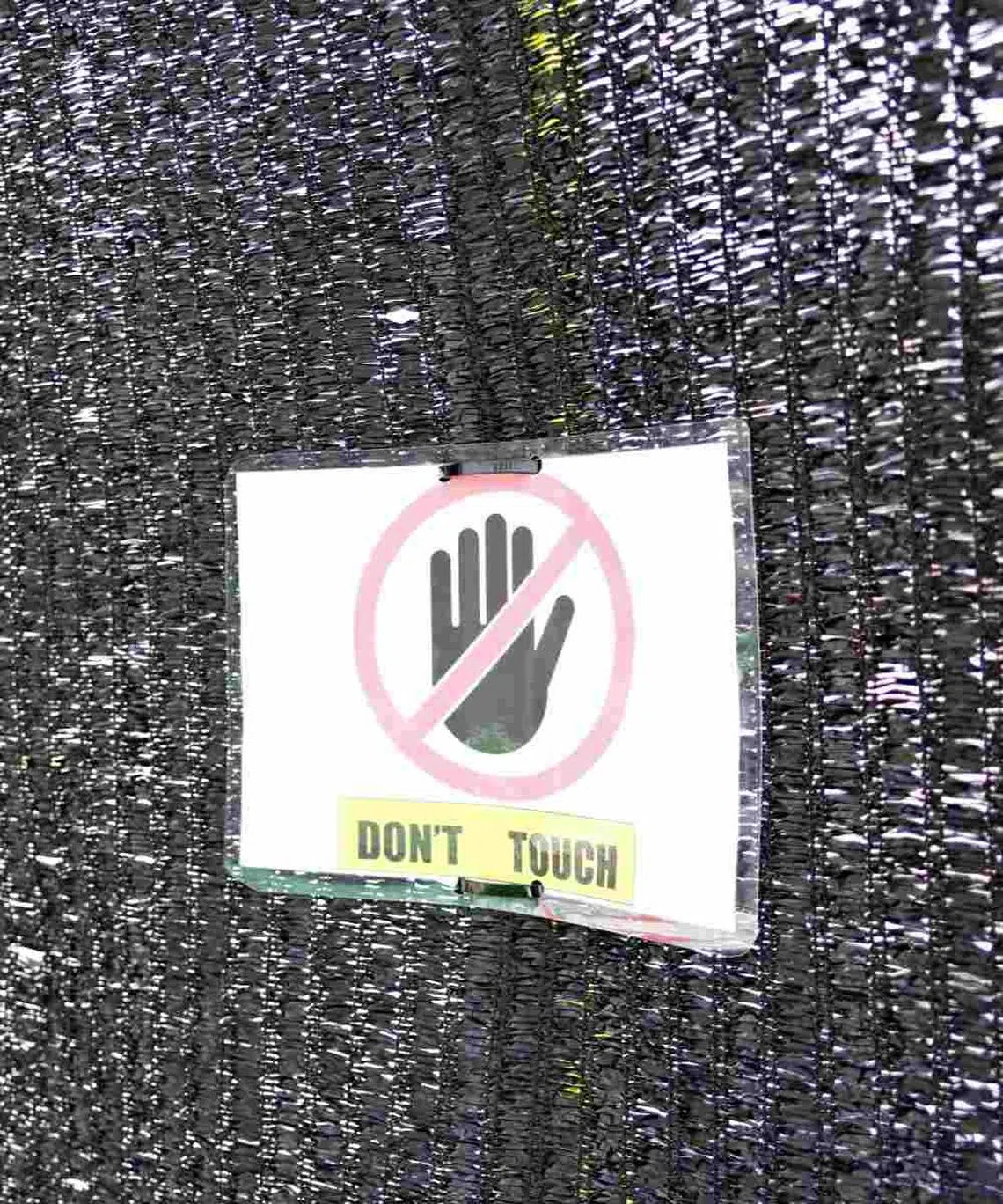 The local authorities have put up a sign that reads “Don’t touch” on the black mesh screen.