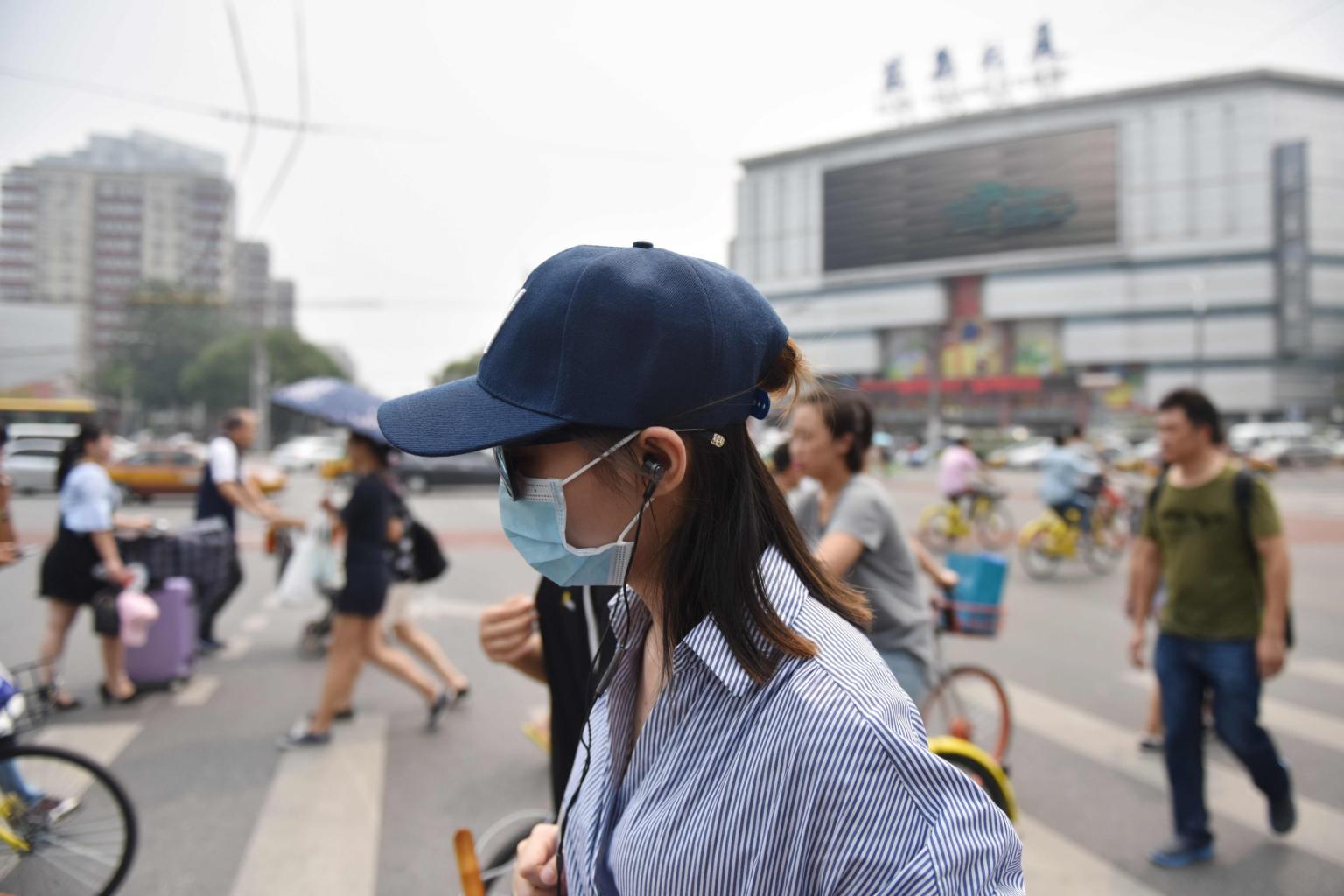 People cross an intersection on a hazy day in Beijing, on July 20, 2017.