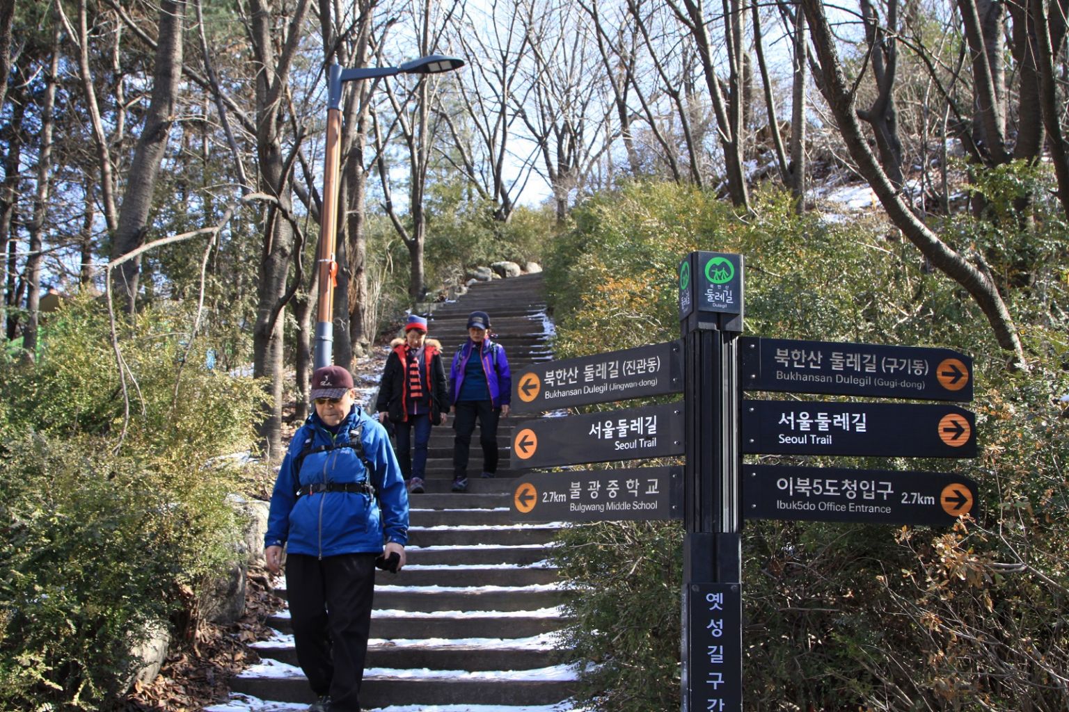 Hikers on Bukhansan in northern Seoul, the most visited mountain in South Korea.