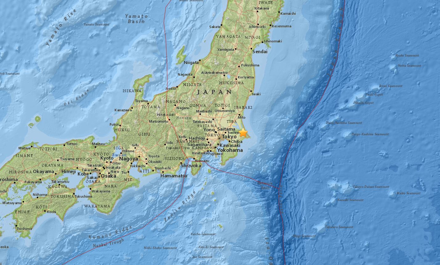 The epicentre of the earthquake, which occurred at 11.50am, was in Chiba prefecture, east of Tokyo, the Japan Meteorological Agency said.