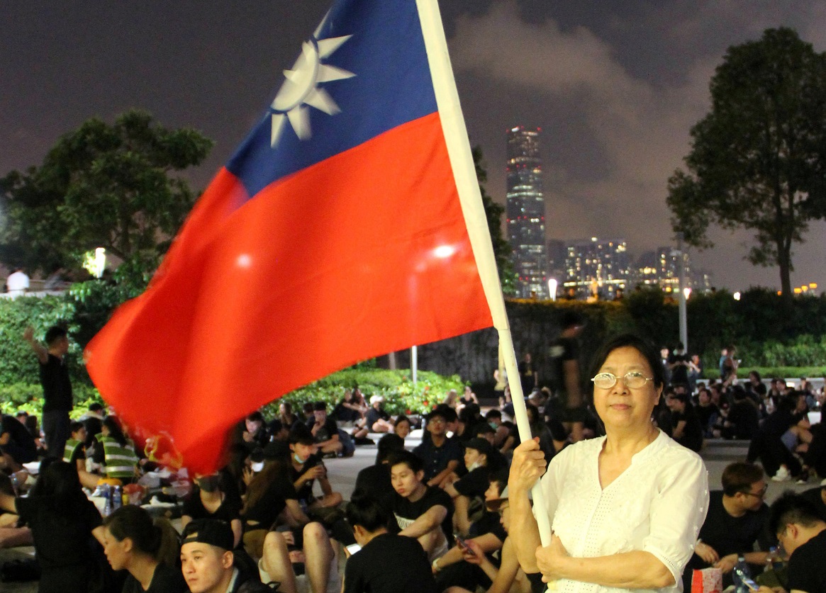 Ms Yung Xiu Kwan, 67, poses with a Taiwan flag during a demonstration against the proposed extradition Bill, in Hong Kong, on June 17, 2019. She is among those leaving the Chinese-ruled city for a new life in proudly democratic Taiwan.