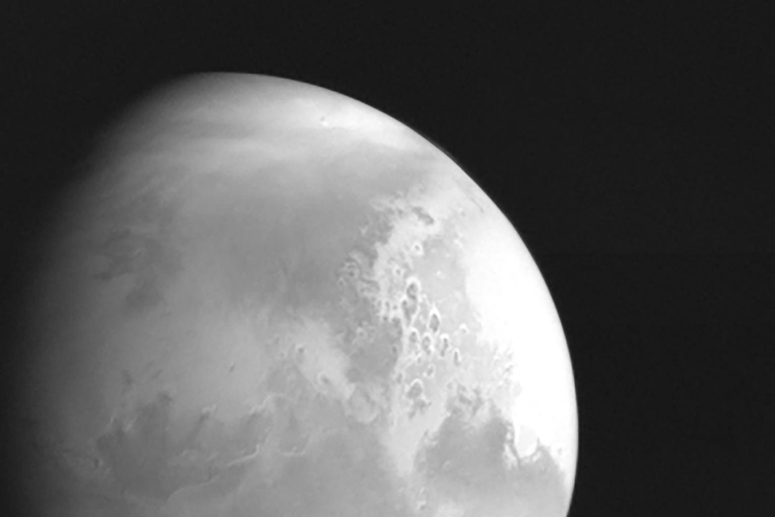 The uncrewed Tianwen-1 took the picture at a distance of around 2.2 million km (1.4 million miles) from Mars, according to the China National Space Administration (CNSA), which supplied a black-and-white image.
