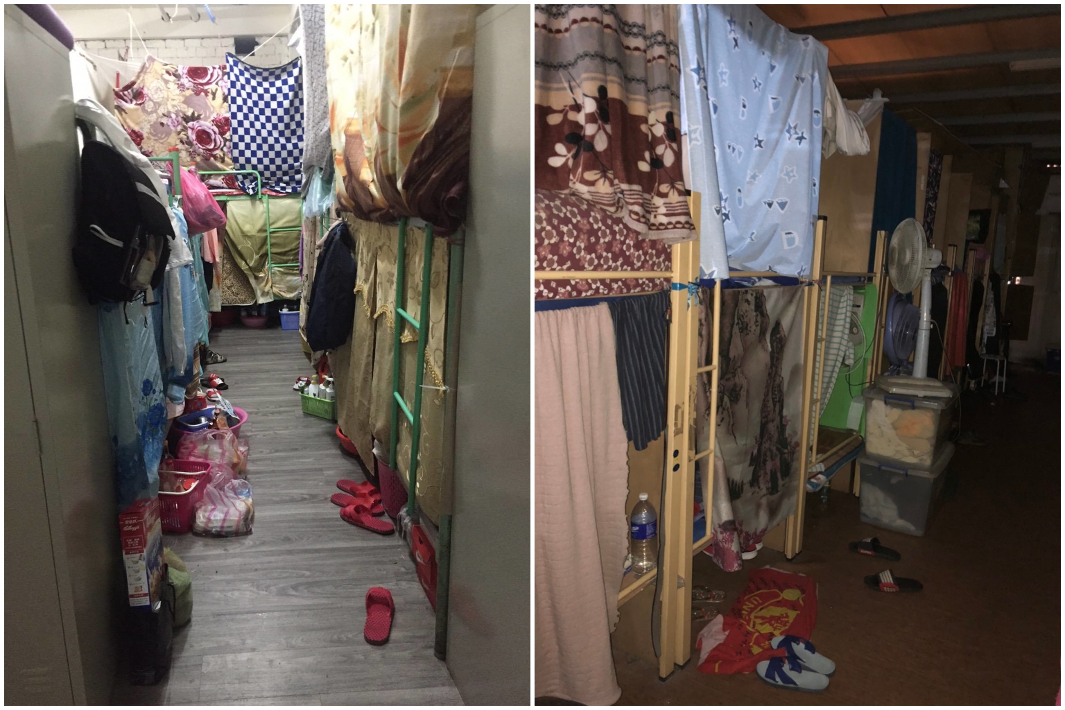 Migrant workers in Taiwan are forced to live in dormitories with 12-16 people per room, and can only pin up makeshift curtains to have some privacy in the pandemic.