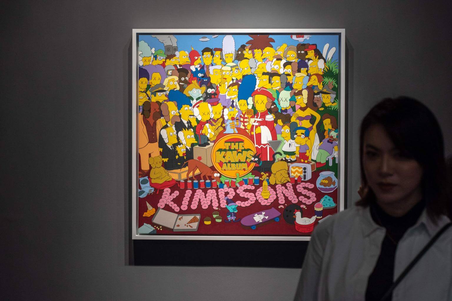 A painting by Brooklyn street artist Kaws based on the Beatles' Sgt Pepper's Lonely Hearts Club Band album but populated with Simpsons characters was sold for US$14.8 million including fees, a record for the artist and about 15 times the estimate.