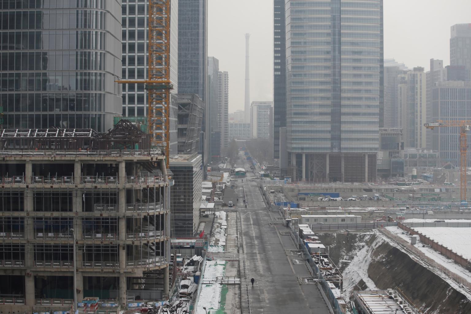 Workers are seen at a construction site in Beijing's central business area, China, as the country is hit by an outbreak of the new coronavirus, on Feb 2, 2020.
