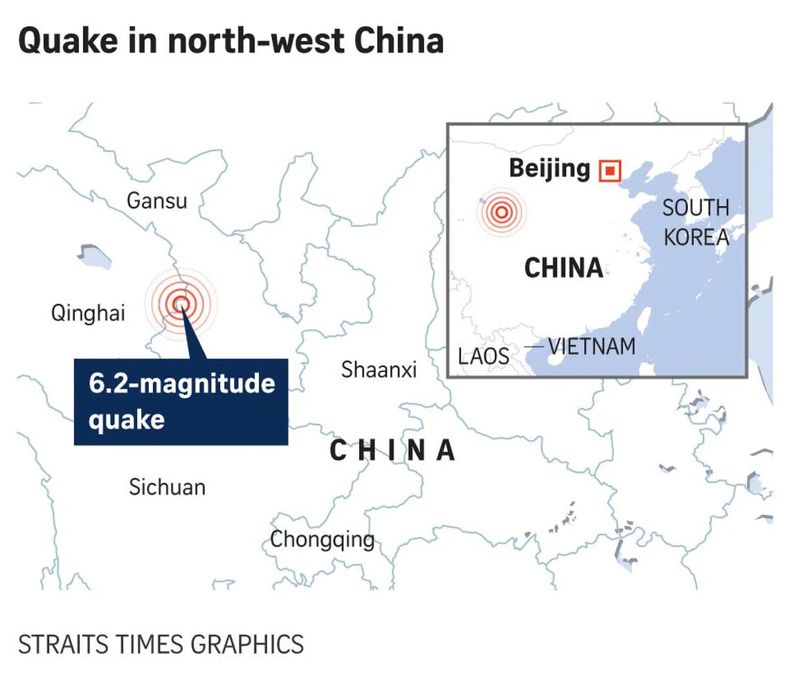 The 6.2-magnitude quake struck in Gansu’s Jishishan, a county with a population of 239,000 located near the border with Qinghai province. Tremors were felt as far as Xi’an in Shaanxi province, some 570km away.