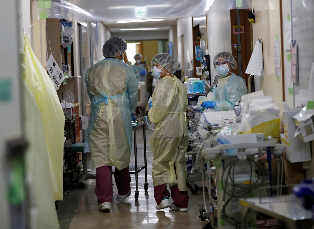 Medical workers in the Intensive Care Unit for coronavirus patients at St. Marianna Medical University Hospital in Kawasaki, south of Tokyo, on May 4, 2020.