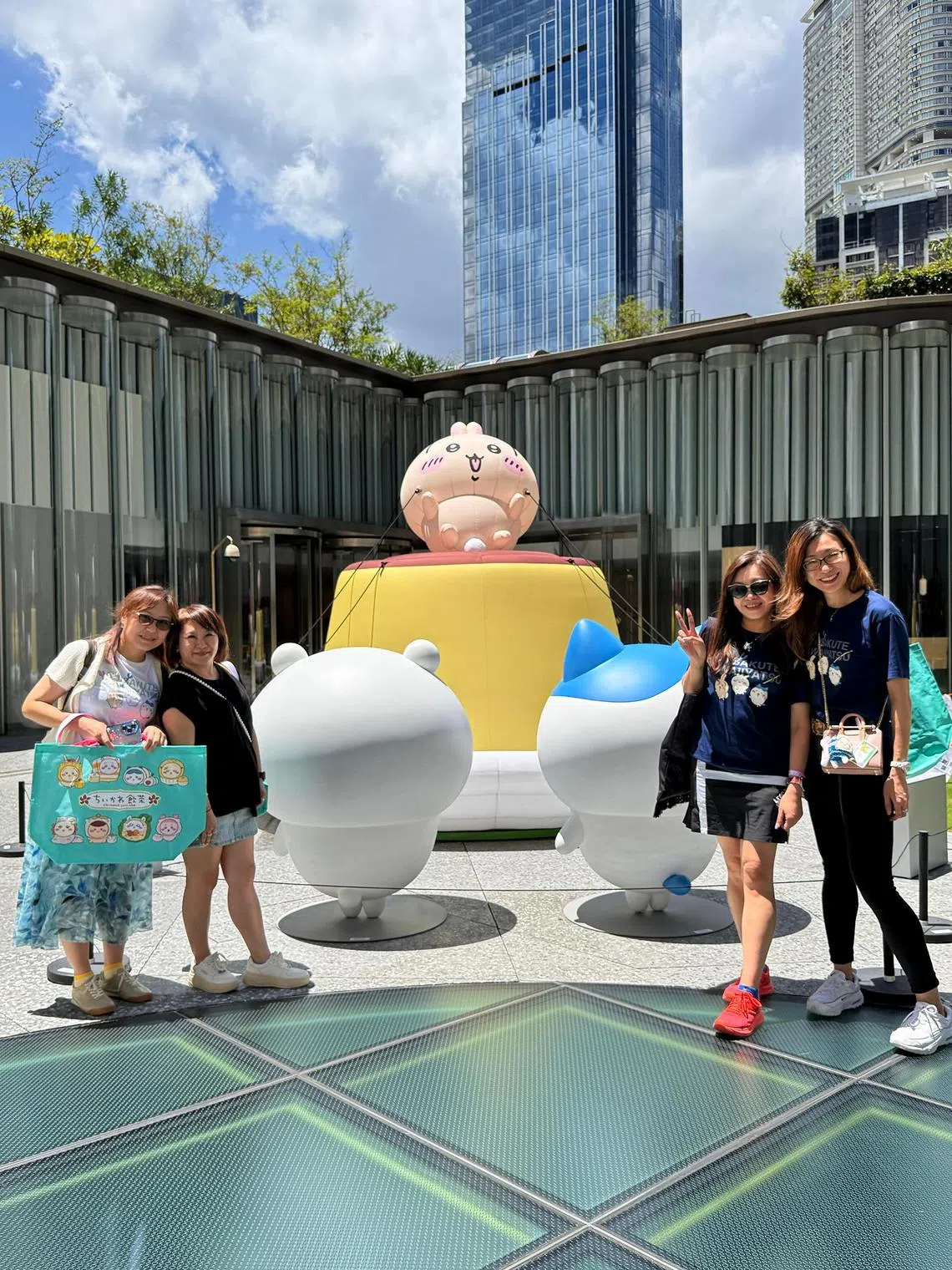 Ms Elizabeth Chow (third from left) and her friends at the Chiikawa Days exhibition at K11 Musea in Tsim Sha Tsui, Hong Kong, on Aug 10.