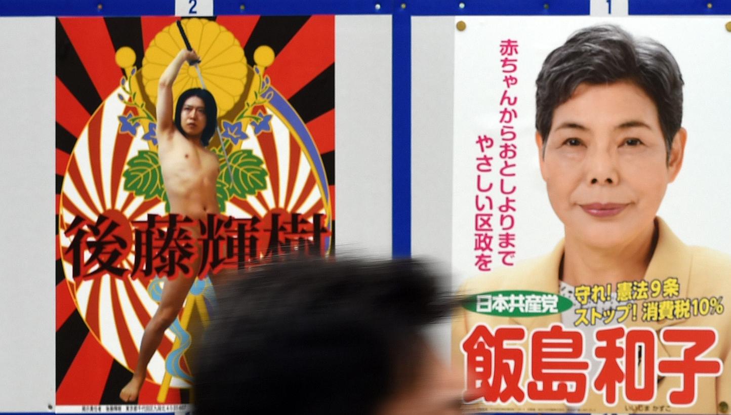 TOKYO (AFP) - A naked nationalist is stirring up election billboards in Japan, offering a bit of colour - and a lot of flesh - to get out the vote.