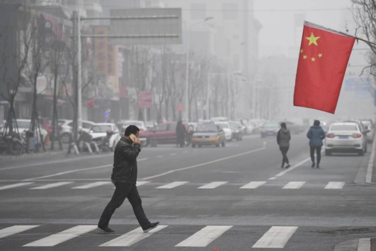 A man crossing a road in Shijiazhuang, Hebei province, on Dec 21, 2016.