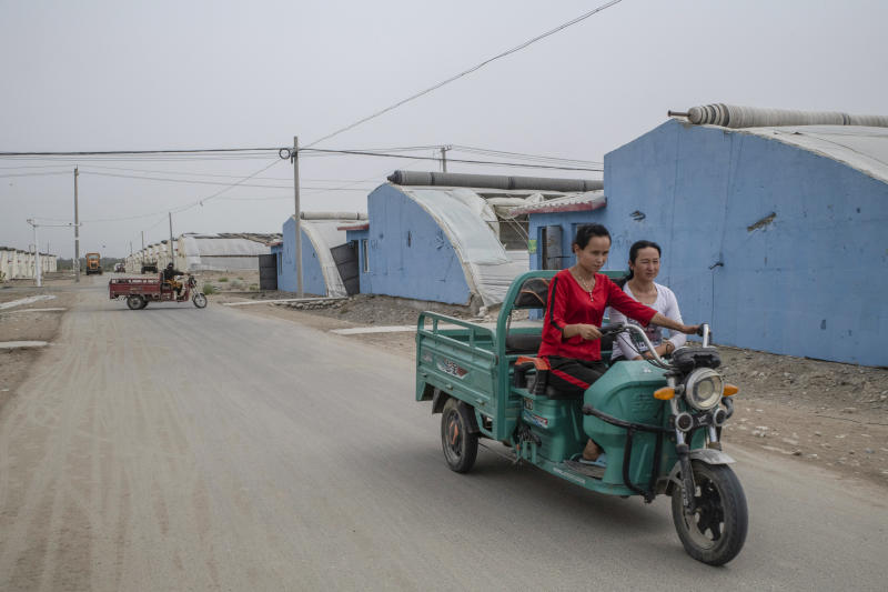 In a photo taken on Aug 4, 2019, Uighur women are seen in a settlement called Harmony New Village in Xinjiang, China.