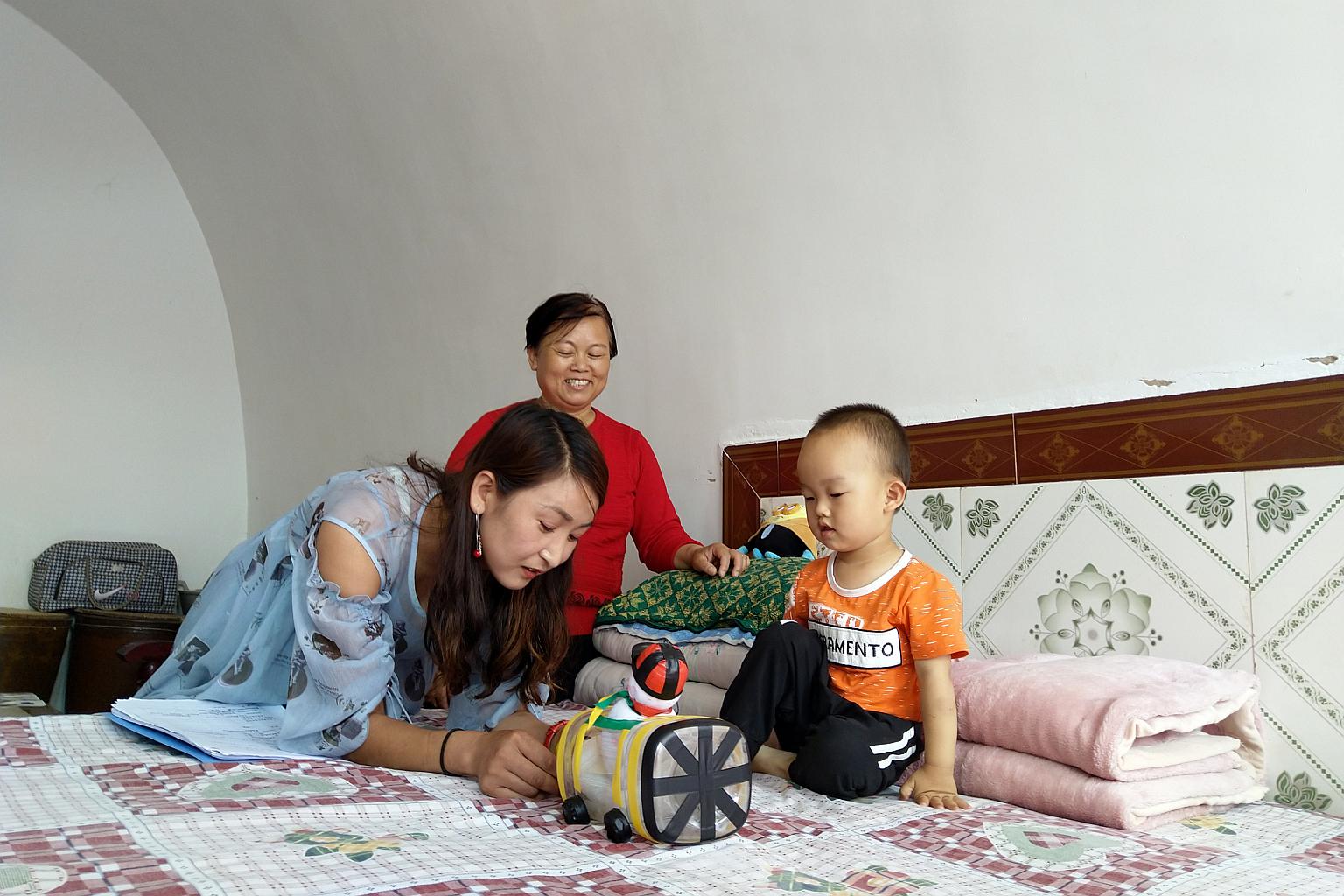 As Qirui raced around his cave home in mountainous Qiaochuan township of Huachi county in Gansu - one of China's poorest provinces - Ms Gu taught his grandmother and primary caregiver Ren Hongnu, 46, how to turn the innocuous toy into sessions of directed play that would teach the toddler six concepts: go, stop, accelerate, slow down, far, and near.