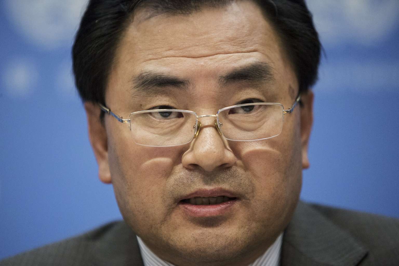 Ambassador An Myong Hun addresses the situation on the Korean Peninsula in a news conference at the UN in New York.
