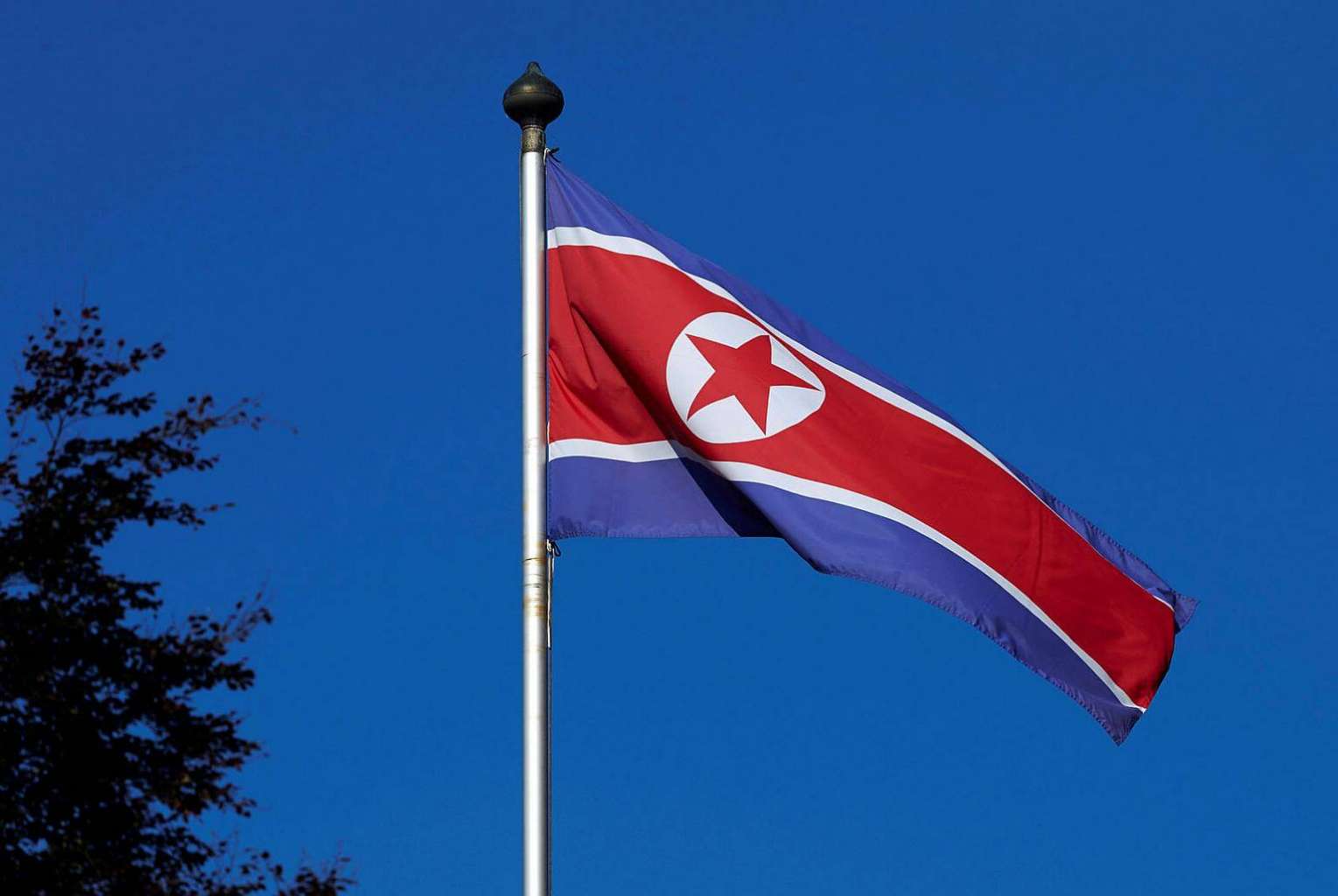 A North Korean flag flies on a mast at the Permanent Mission of North Korea in Geneva on Oct 2, 2014.