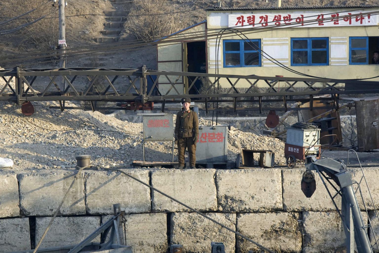 A North Korean soldier stands guard in Sinuiju, opposite Dandong in China, which detected a series of Covid-19 infections.