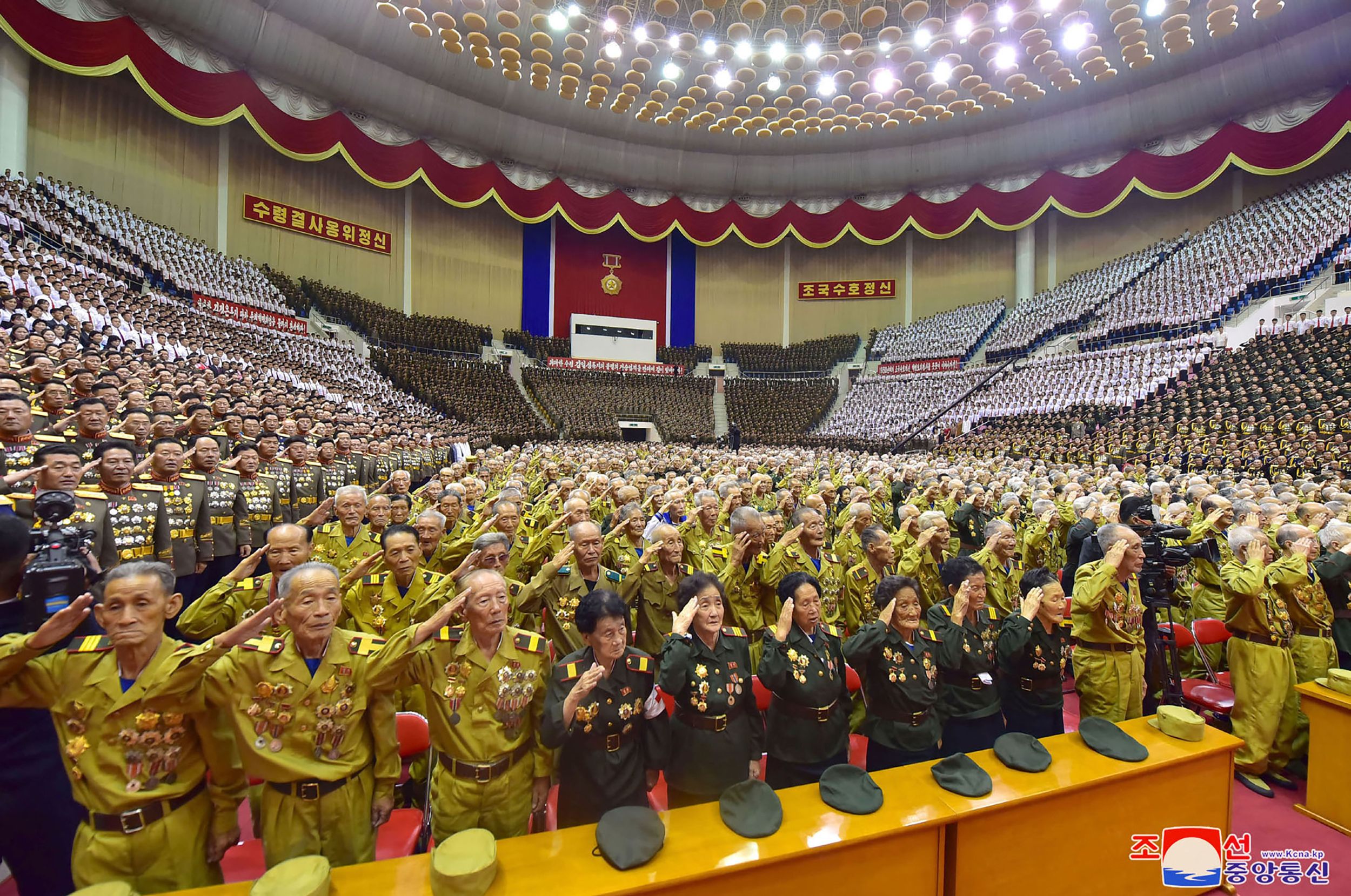 The veterans ceremony in Pyongyang on Tuesday was to commemorate the 69th anniversary of the July 27 Korean War armistice, which left the two Koreas technically still at war.