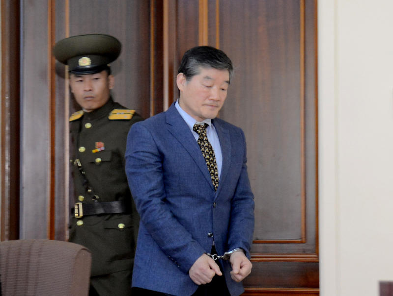 Korean-American Kim Dong Chul entering a courtroom in this undated photo released by North Korea's Korean Central News Agency on April 29, 2016.