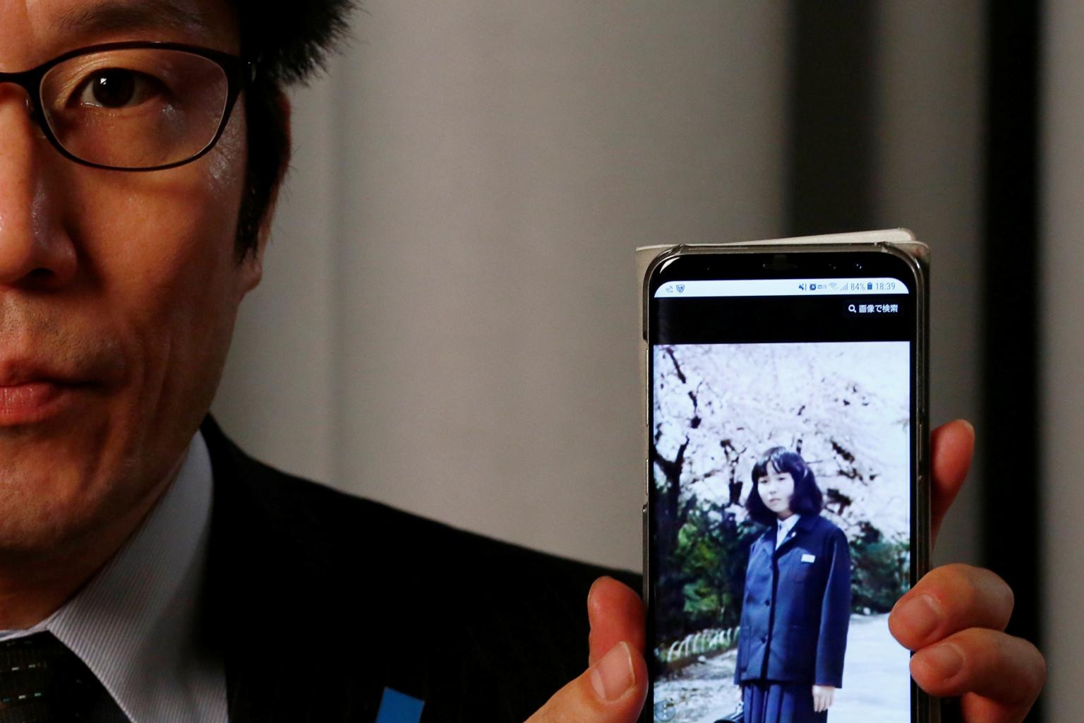 Takuya Yokota shows a picture of his sister Megumi Yokota, a Japanese national abducted by North Korean agents decades ago as a schoolgirl, on his smartphone during an interview with Reuters in Tokyo, Japan, on Oct 26, 2017.
