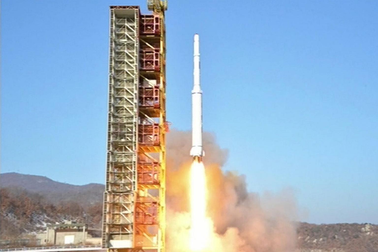 North Korea's locket launch of earth observation satellite Kwangmyong 4 in a picture taken from North Korean TV and released by South Korean news agency Yonhap on Feb 7, 2016.