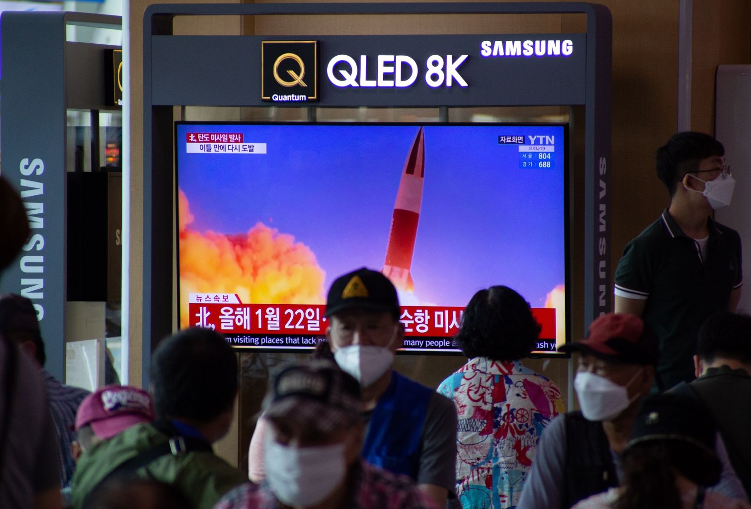 People watch a TV showing breaking news at a station in Seoul, South Korea, on Sept 15, 2021..