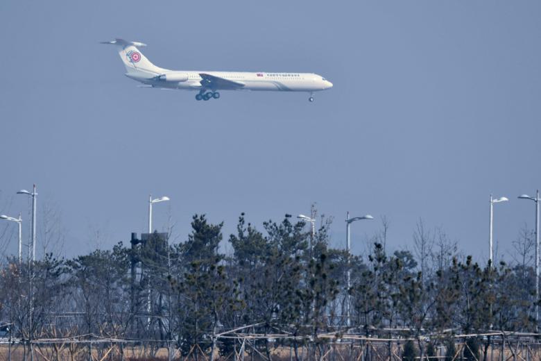 The North Korean plane, a white Ilyushin-62 aircraft, touching down at Incheon airport near Seoul, South Korea on Feb 9, 2018.