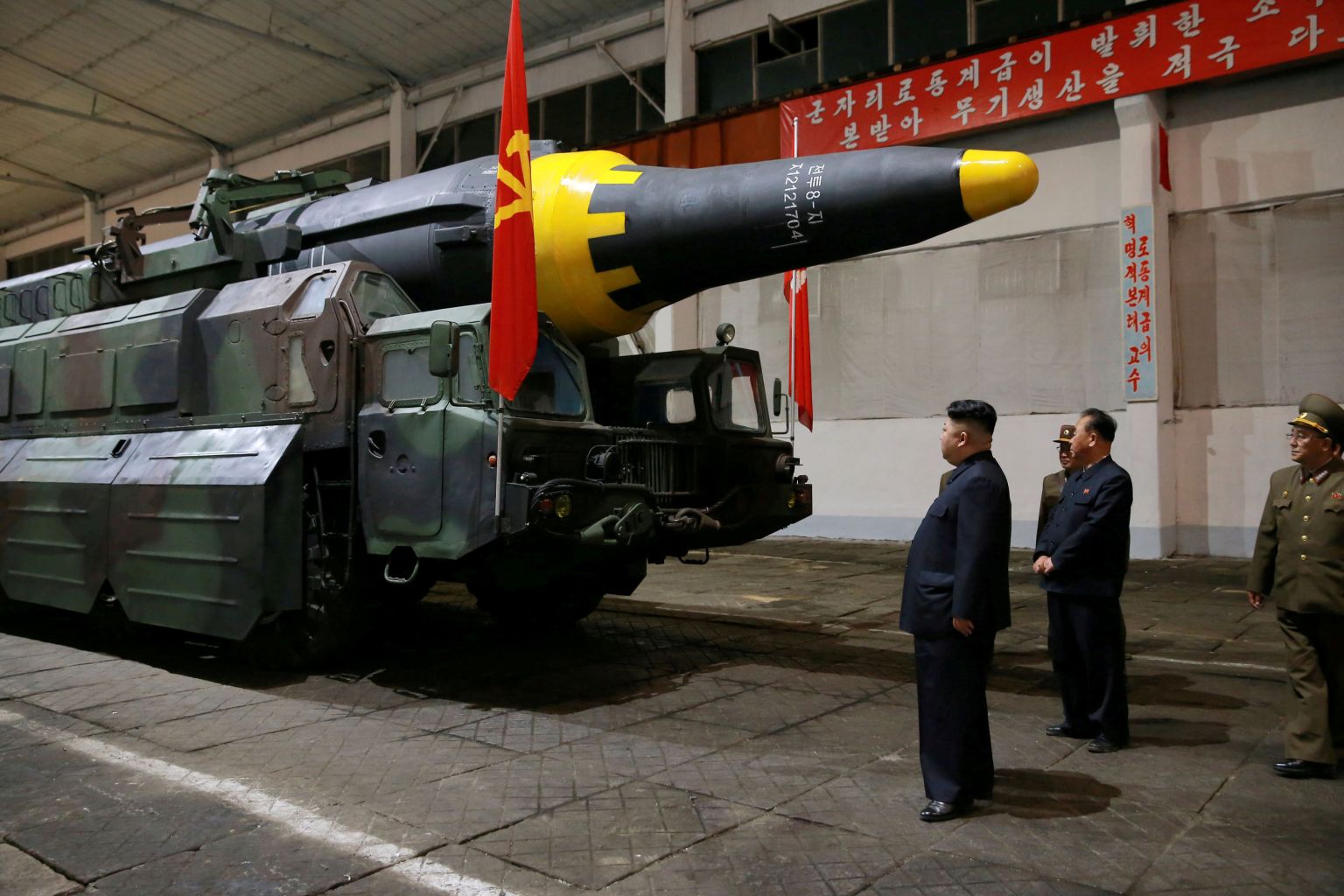 North Korean leader Kim Jong Un inspects a Hwasong-12 rocket in a file photo.
