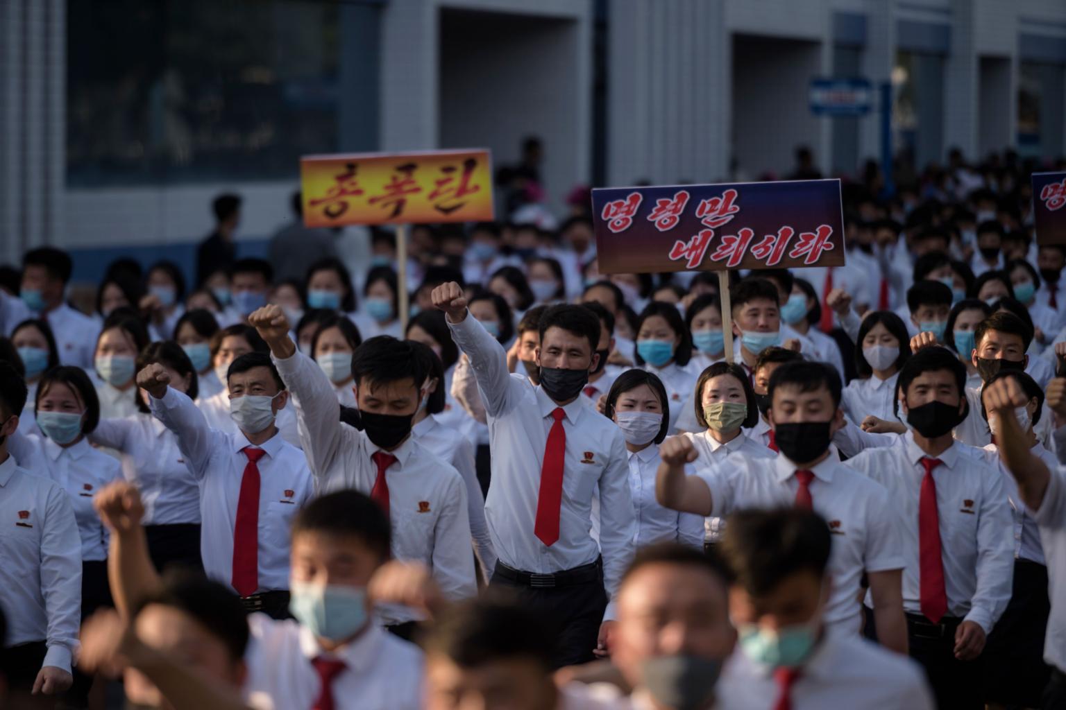 North Korean students take part in a rally denouncing 'defectors from the North' in Pyongyang on June 8, 2020.