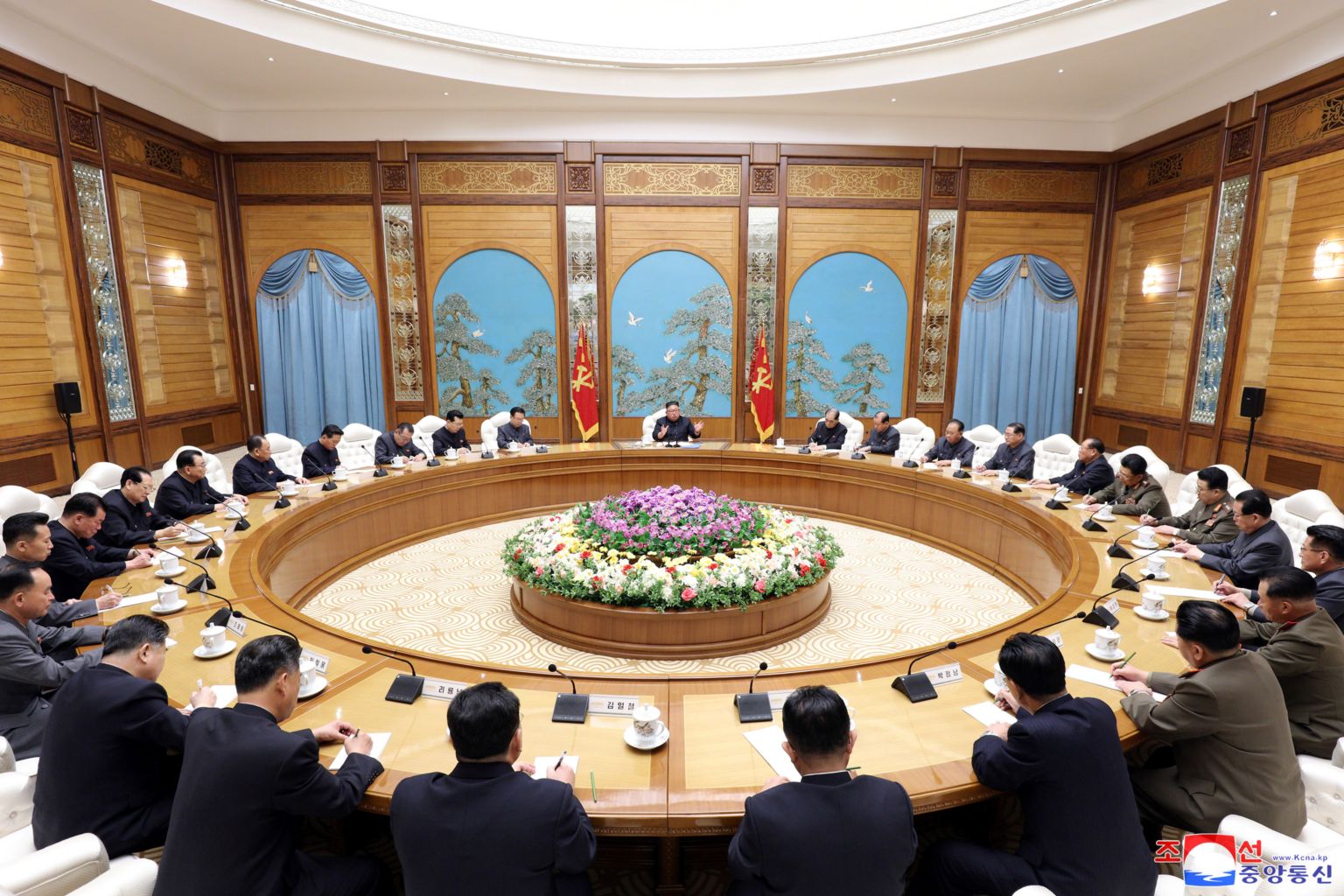 North Korean leader Kim Jong Un takes part in a meeting of the Political Bureau of the Central Committee of the Workers' Party of Korea on April 11, 2020.