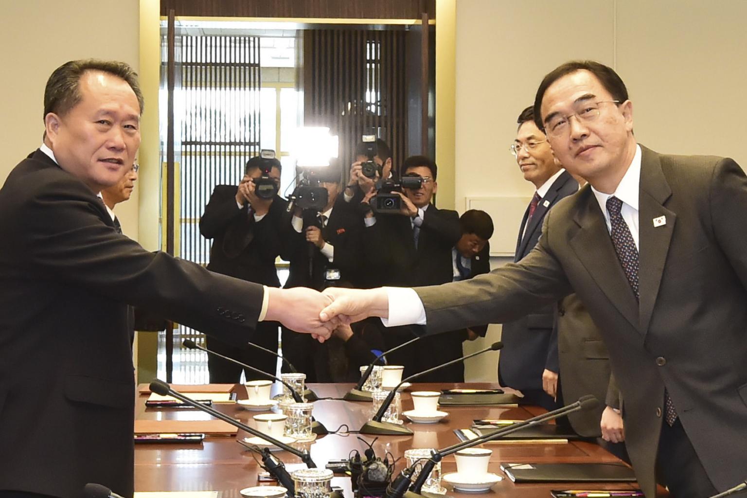 The talks in Panmunjom were led by Mr Ri Son Gwon (left), chairman of the North's committee for peaceful reunification that handles cross-border affairs, and the South's Unification Minister Cho Myoung-gyon.