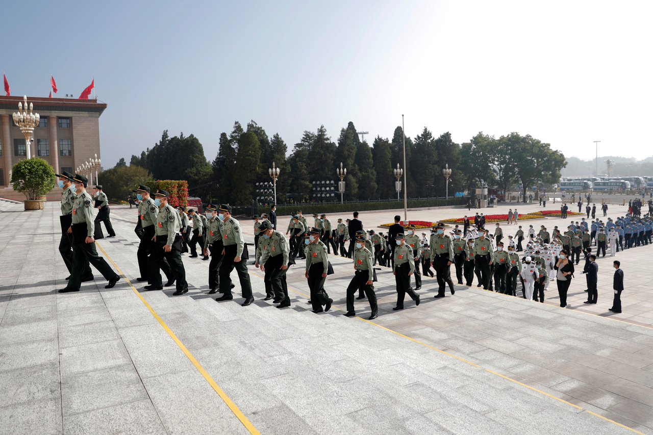 Military delegates arrive to the Great Hall of the People before the opening session of the National People's Congress on May 22, 2020.