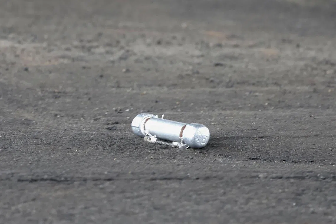 A cylindrical object left at the site of Japan PM Fumio Kishida’s speech in Saikazaki, Wakayama Prefecture, on April 15, 2023.