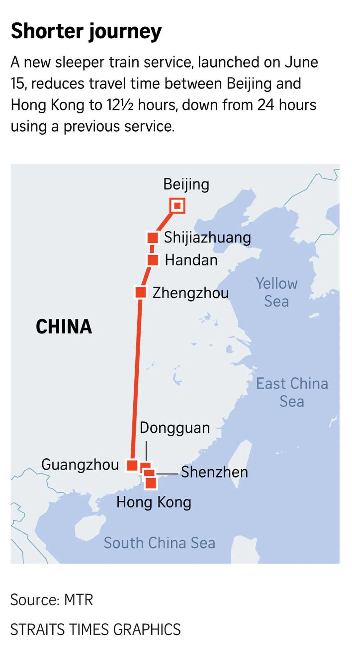 It brings Hong Kong in line with mainland China, where sleeper trains are a common and popular way to travel between provinces.