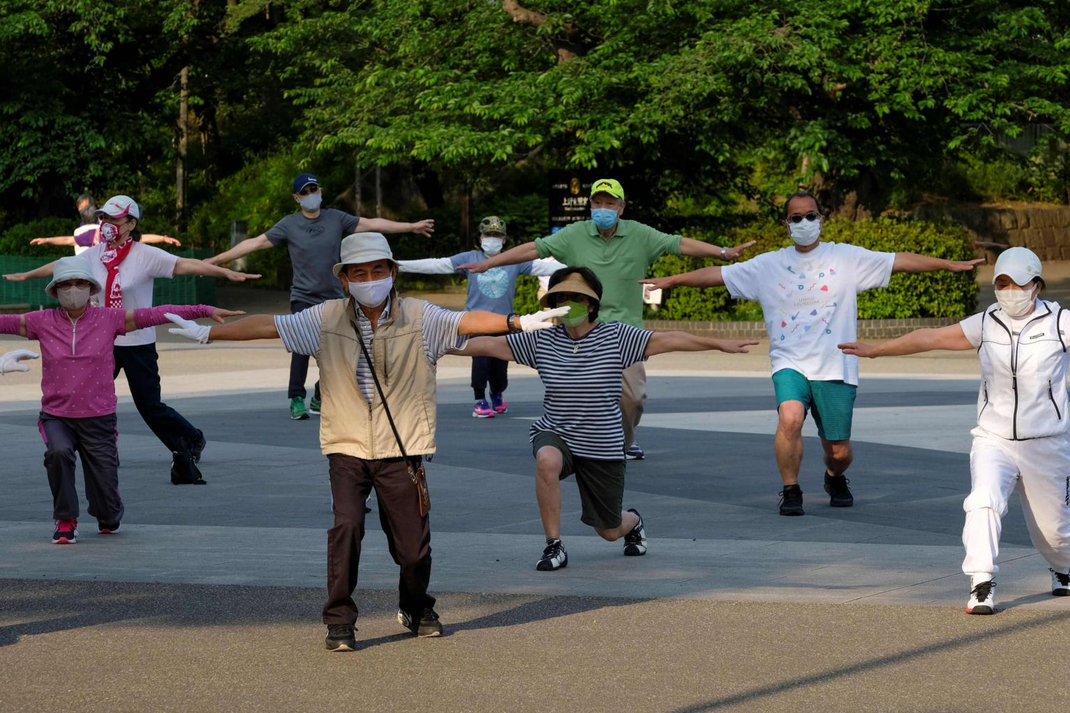 "Our daily lives have become more difficult during the coronavirus. But we need to move our bodies more than ever," Mr Mitsutoshi Watanabe, who leads a group of around 250 people every morning in Tokyo's Ueno Park, told AFP at a recent socially distanced practice.