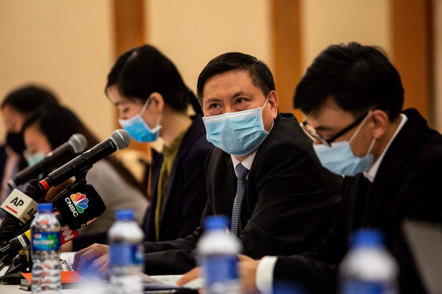 Hong Kong’s Deputy Commissioner of the Ministry of Foreign Affairs of the People’s Republic of China Song Ru’An (centre) speaks to international media during a press conference, on March 9, 2021.