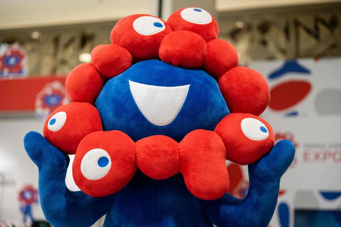 A “Myaku-Myaku” doll, the official mascot for the 2025 Osaka World Expo, at an official event store in Osaka.