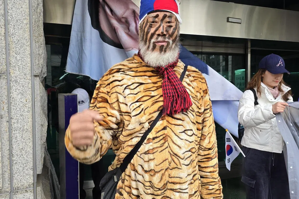 He has been attending rallies to show his support for Yoon, whom he thinks resembles a tiger, hence his dressing like one in support.