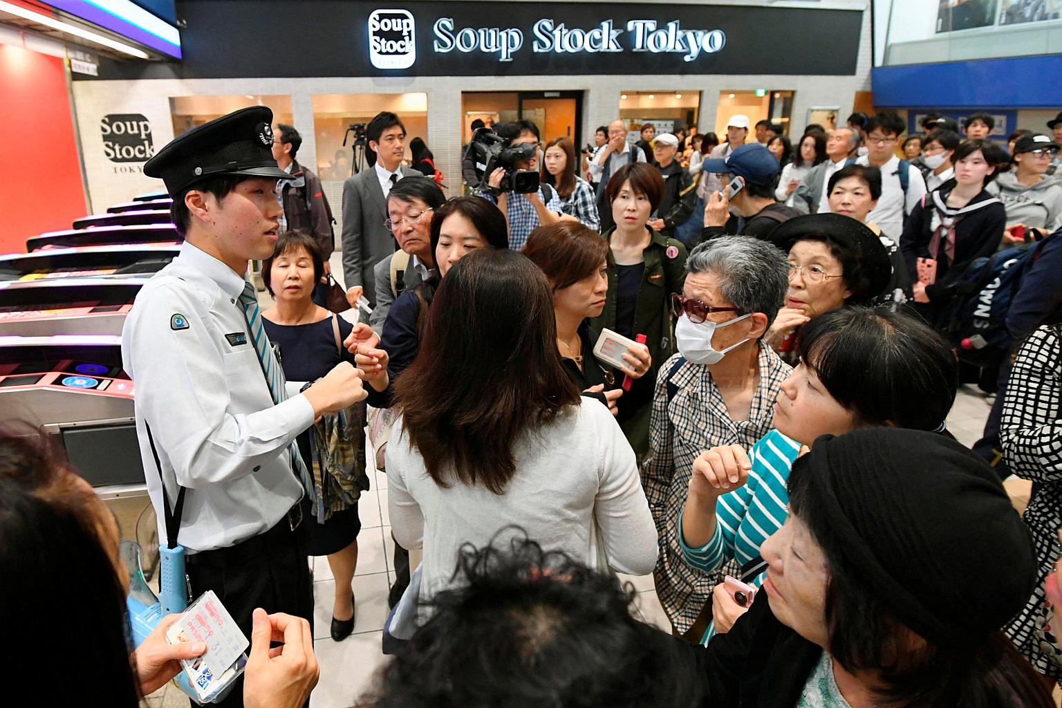 Passengers try to gather information after train services were suspended because of a power outage at a station in Tokyo on Oct 12, 2016.