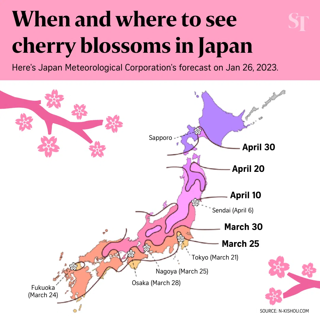 Cherry blossom season in Japan draws huge crowds of residents and tourists, and the peak season is from late March to early April.